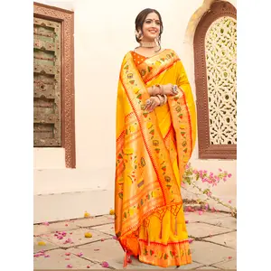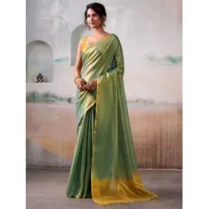 Yellow Color Smart Looks Tissue Silk...