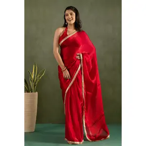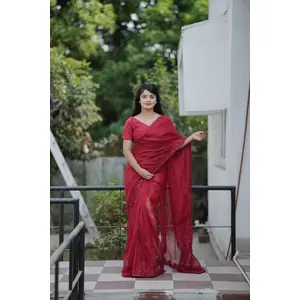 Red Color Chiffon Fabric Ready To...