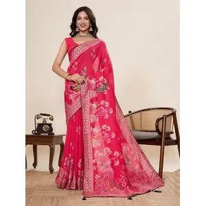 Pink Color Gold Crush Fabric Designer...