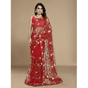 Red Color Soft Net Fabric Designer...