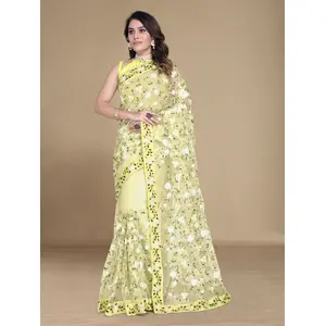 Yellow Color Soft Net Fabric Designer...
