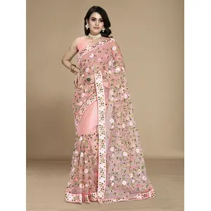Peach Color Soft Net Fabric Designer...