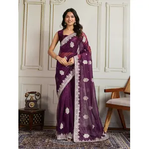 Wine Color Two Tone Satin Silk Saree...