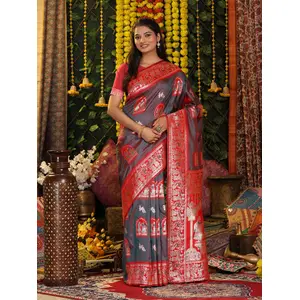 Grey Color Blended Silk Fabric Woven...