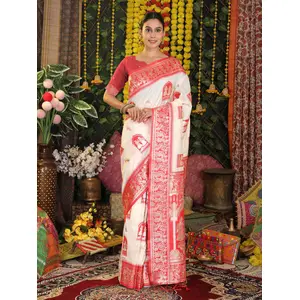 White Color Blended Silk Fabric Woven...