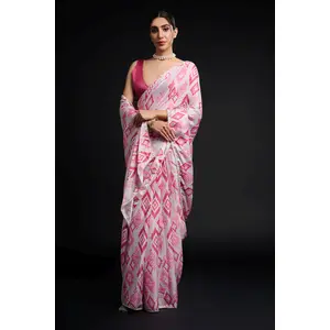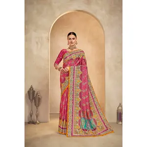 Pink Color Chinon Fabric Designer...