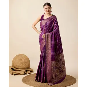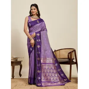 Purple Color Jacquard Silk Graceful...