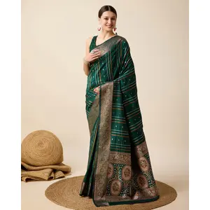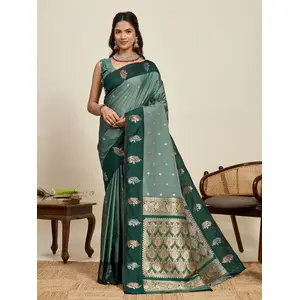 Green Color Jacquard Silk Graceful...