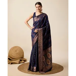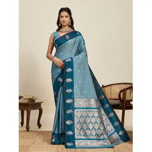 Blue Color Jacquard Silk Graceful...