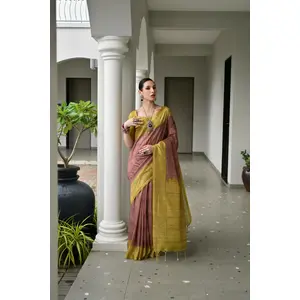 Brown Color Tussar Silk Fabric Ikkat...