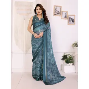Blue Color Moss Satin Patta Stylish...