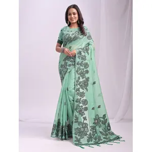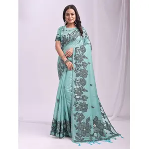 Sea Green Color Linen Cotton Fabric...