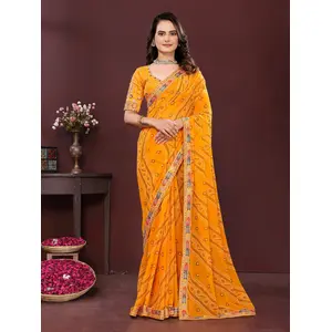 Yellow Color Georgette Fabric Bandhej...