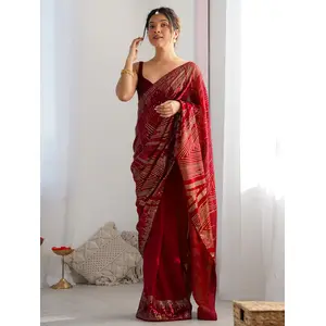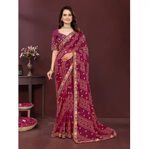 Maroon Color Georgette Fabric Bandhej...