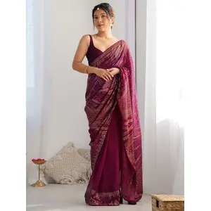 Wine Color Georgette Fabric Bandhej...