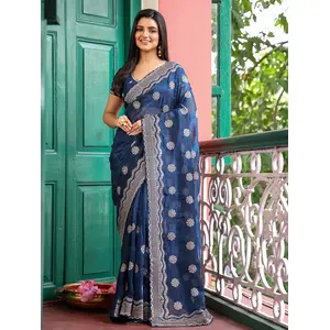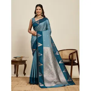 Blue Color Soft Silk Woven Jari...