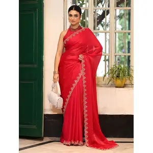 Red Color Designer Tissue Fabric...