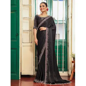 Black Color Fendy Satin Fabric Zarkan...