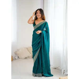 Teal Color Fendy Satin Fabric Zarkan...