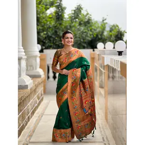 Green Color Paithani Silk Fabric...