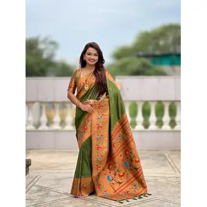 Mahendi Color Paithani Silk Fabric...