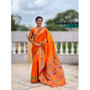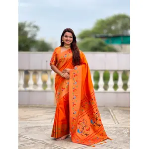 Orange Color Paithani Silk Fabric...