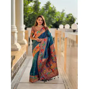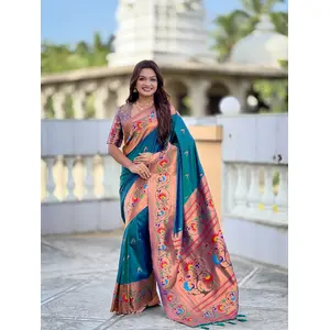 Teal Color Paithani Silk Fabric...