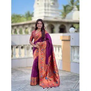 Violet Color Paithani Silk Fabric...
