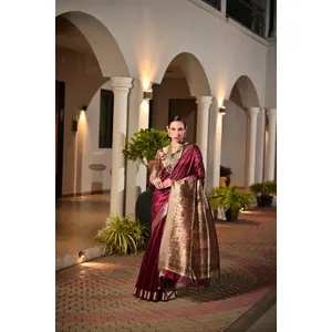 Wine Color Smart Khadi Raw Silk Saree...