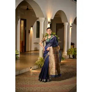 Blue Color Smart Khadi Raw Silk Saree...