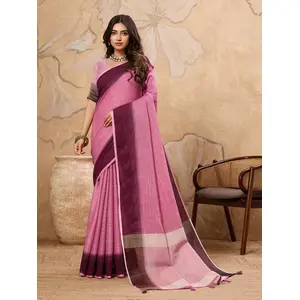 Rani Pink color Linen Based Fabric...