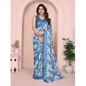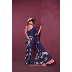 Blue Color Moss Satin Patta Woven...