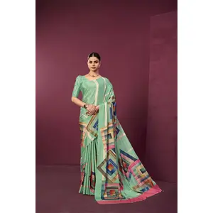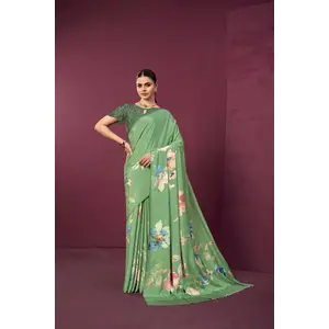 Sea Green Color Malai Crepe Silk...