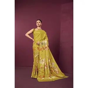 Mustard Color Malai Crepe Silk Fabric...