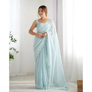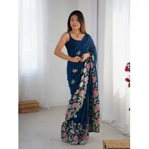 Blue Color Floral Embroidered Sequins...