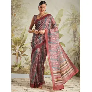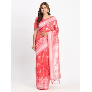 Red Color Linen Cotton Woven Designer...