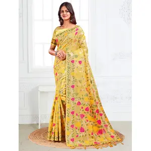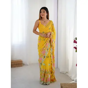 Yellow Color Floral Embroidered...