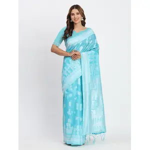 Sky Blue Color Linen Cotton Woven...