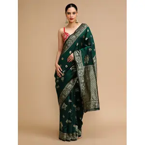 Green Color Lichi Silk Saree Woven...