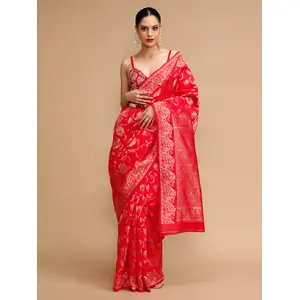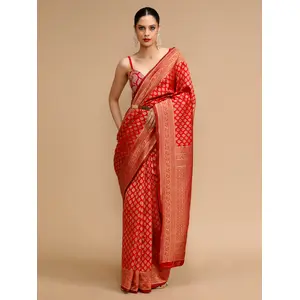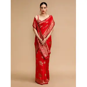 Red Color Lichi Silk Saree Woven...