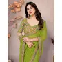 Parrot Green Color Georgette Fabric Designer Embroidered Traditional Leheria Saree