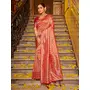 Peach Color Banarasi Silk Fabric Woven Jari Designer Ethnic Sophisticated Saree