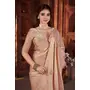 Peach Color Beautiful Heavy Work Ceremonial Fandy Satin Silk Saree