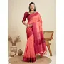 Peach Color Khadi Raw Silk Wevon Pallu Border Designer Ethnic Festive Wear Saree