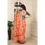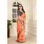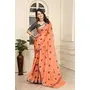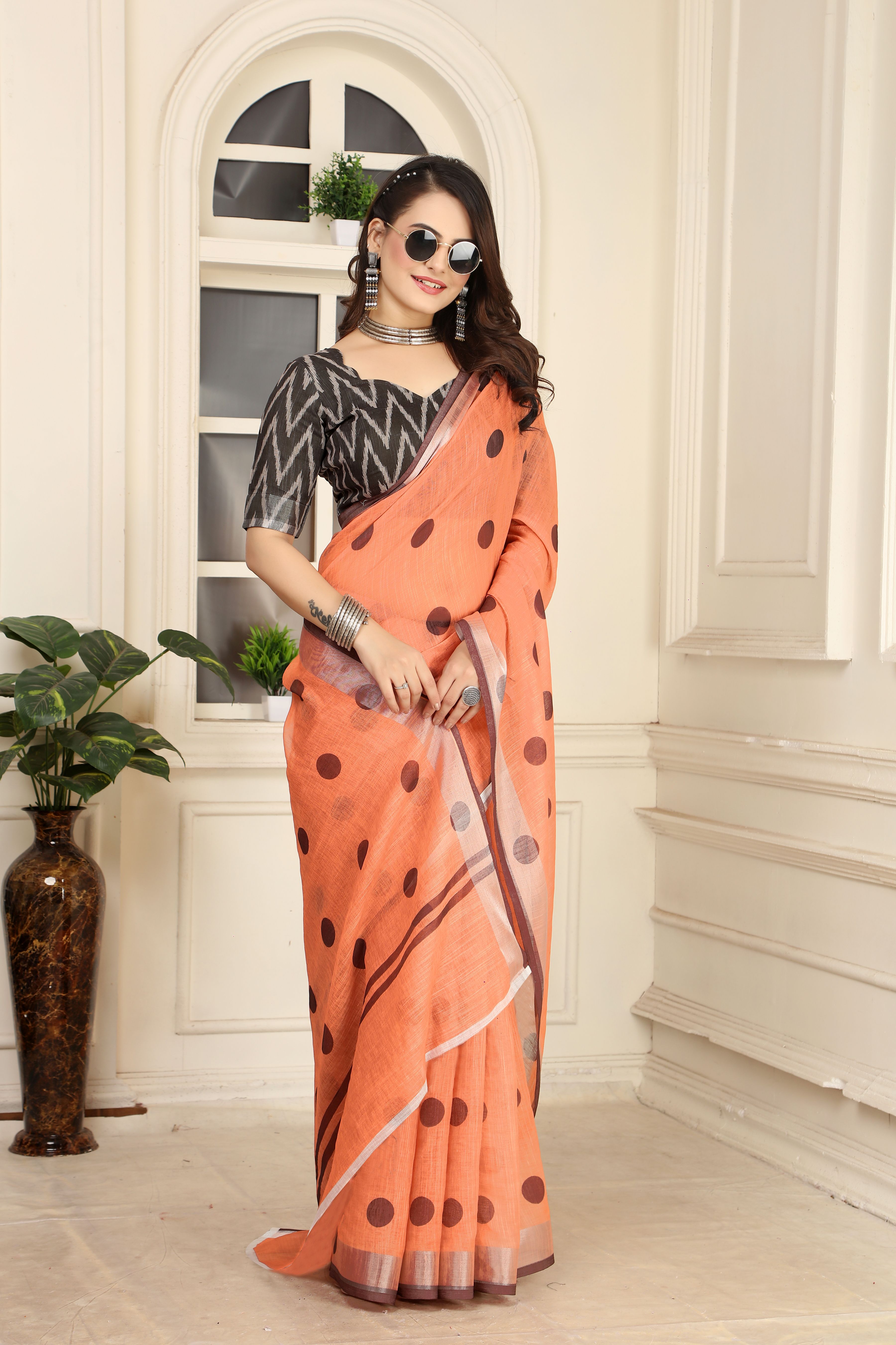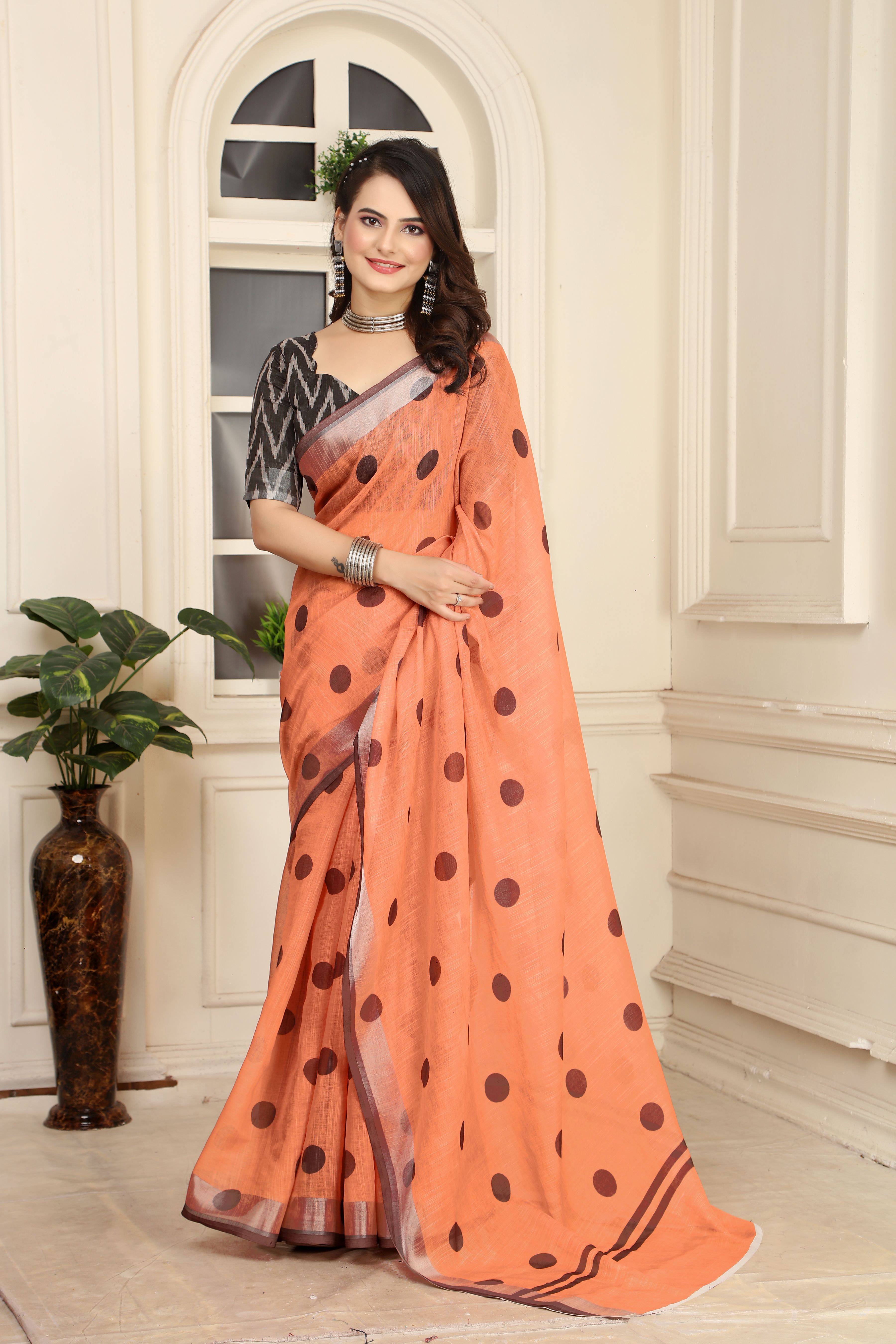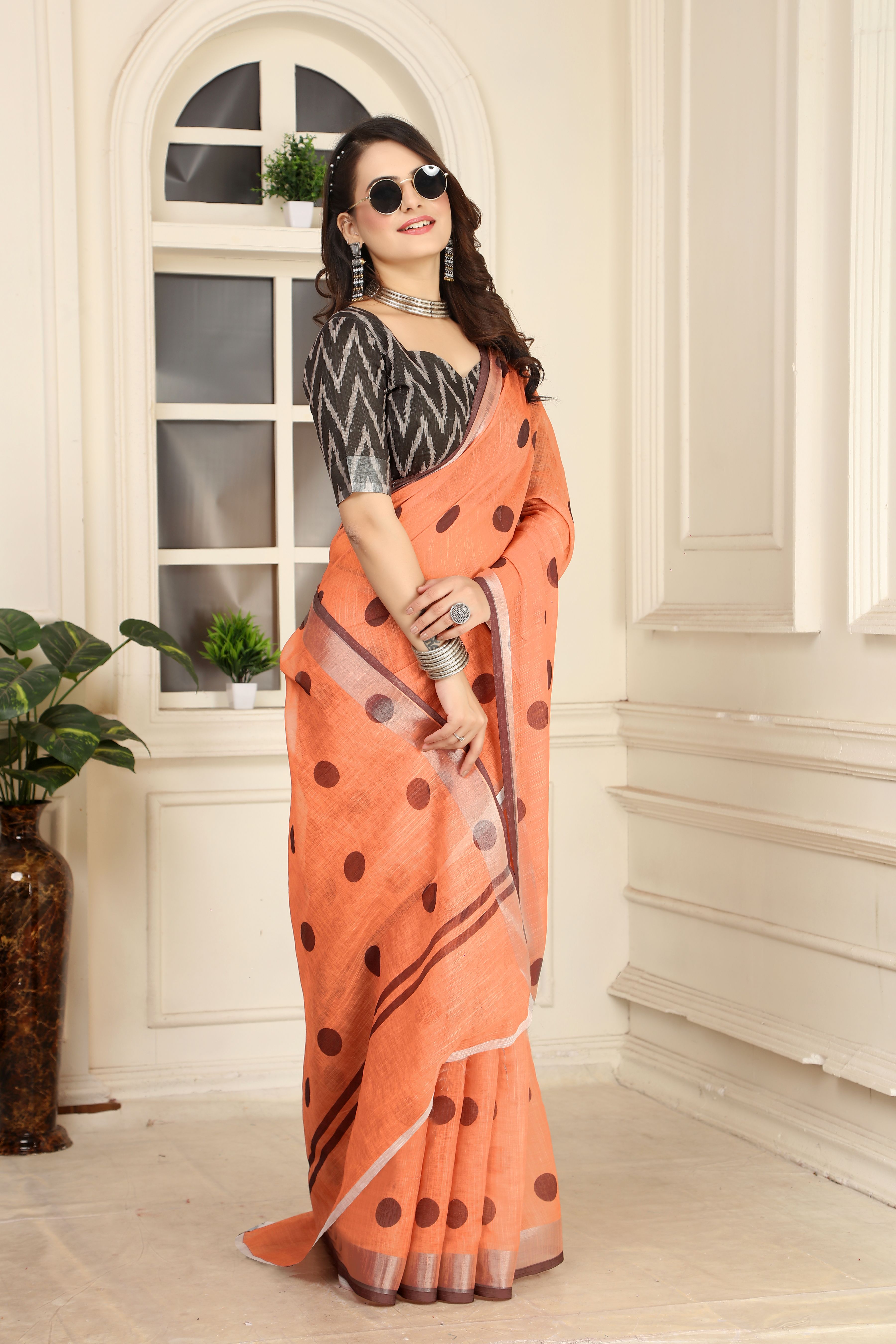Peach Color Linen Cotton Fabric Beautiful Printed Saree