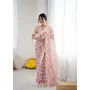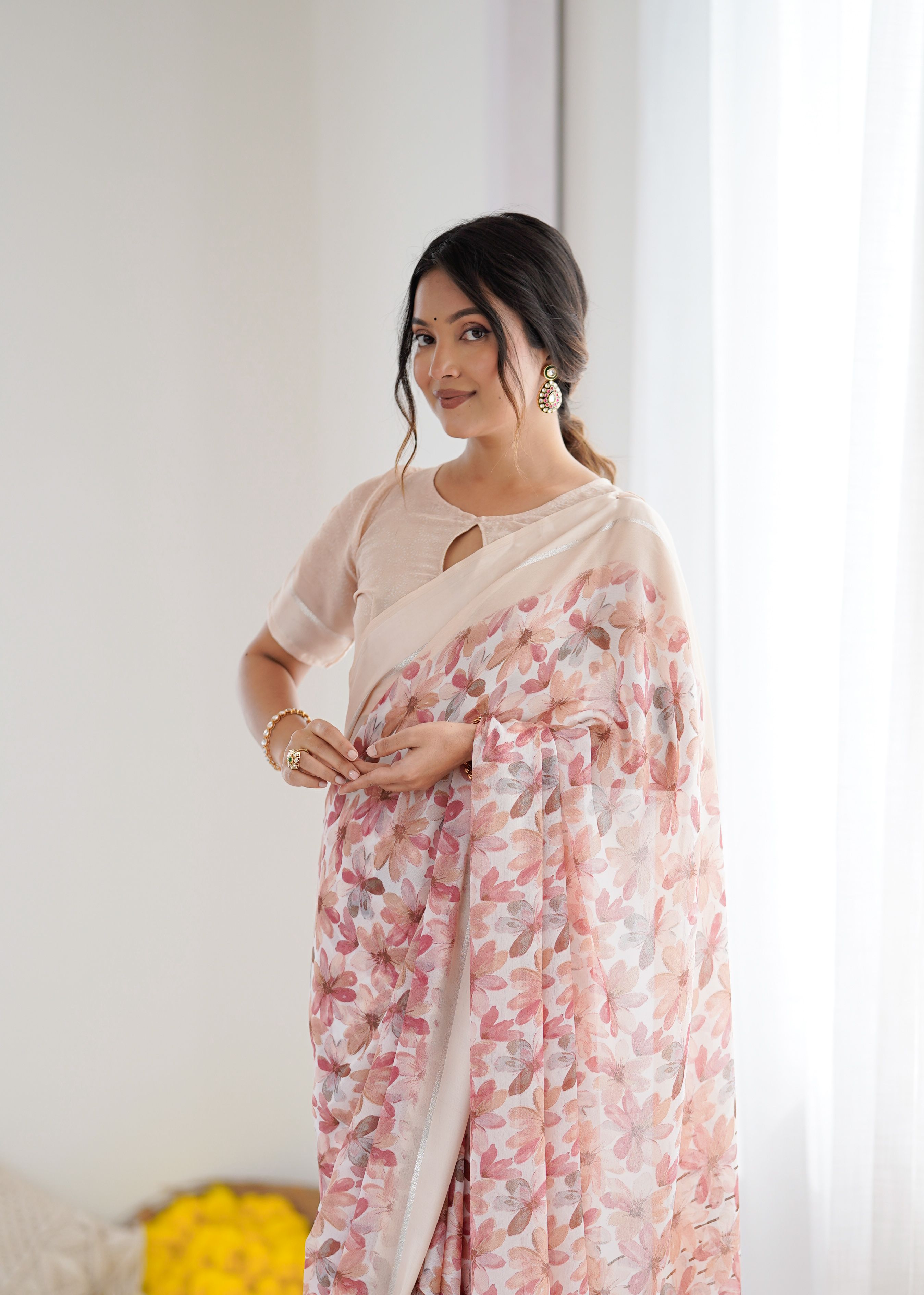 Peach Color Moss Satin Patta Fabric Designer Printed Ethnic Partywear Saree