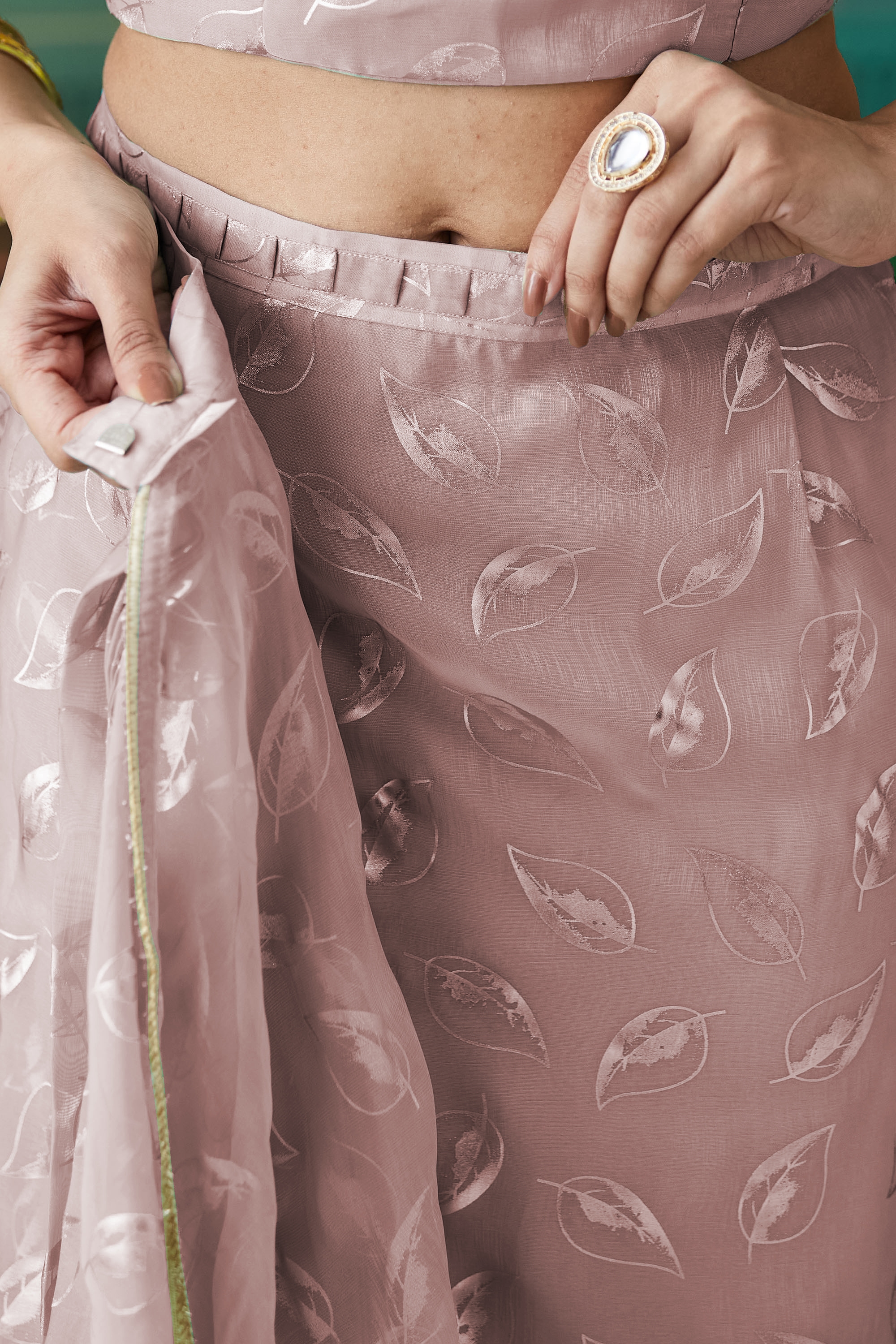 Peach Color Organza Fabric Solid Designer Foil Printed Saree