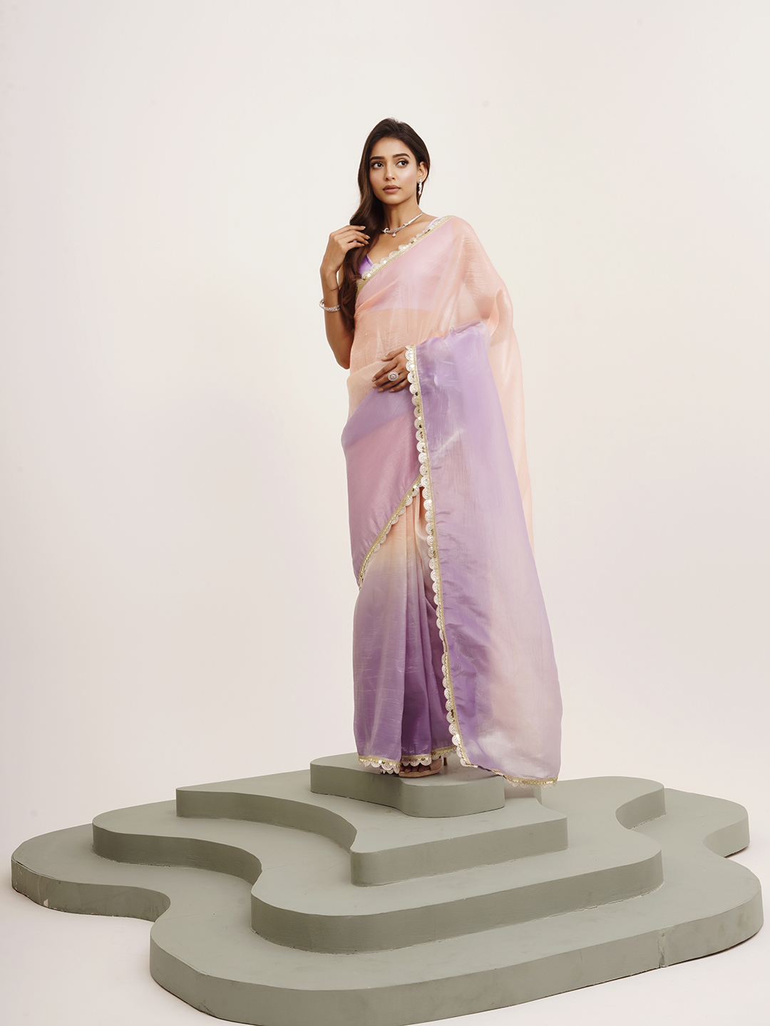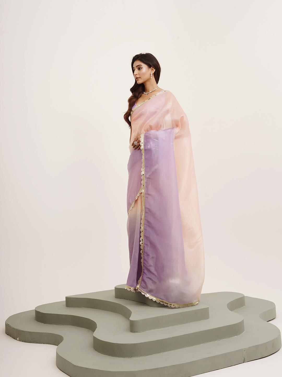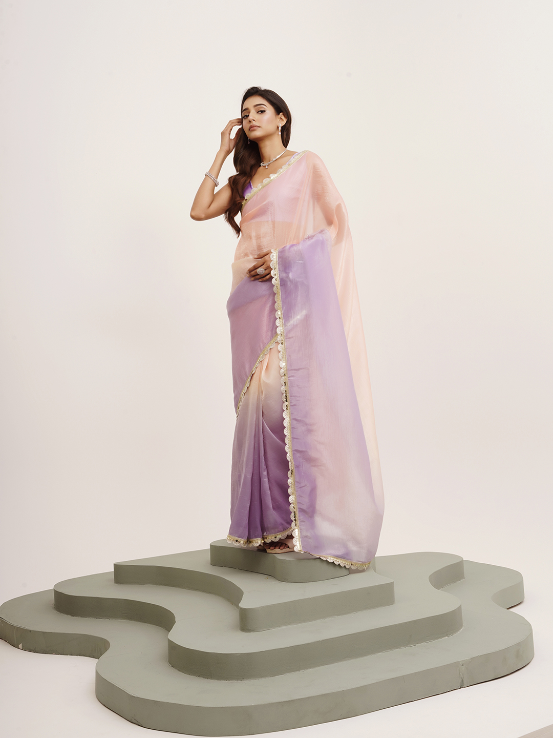 Peach Color Tissue Fabric Embellished Sequinned Work Fancy Saree