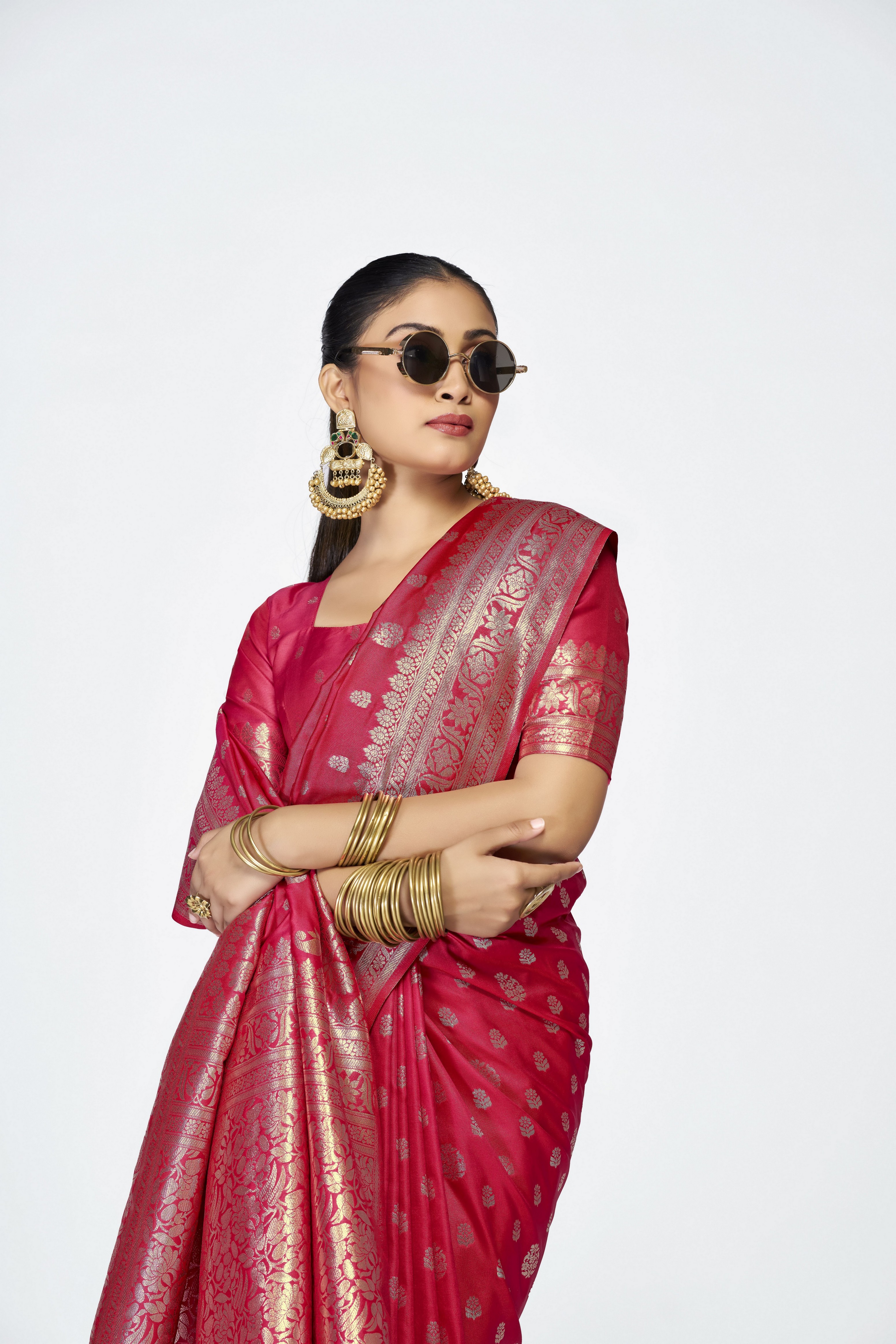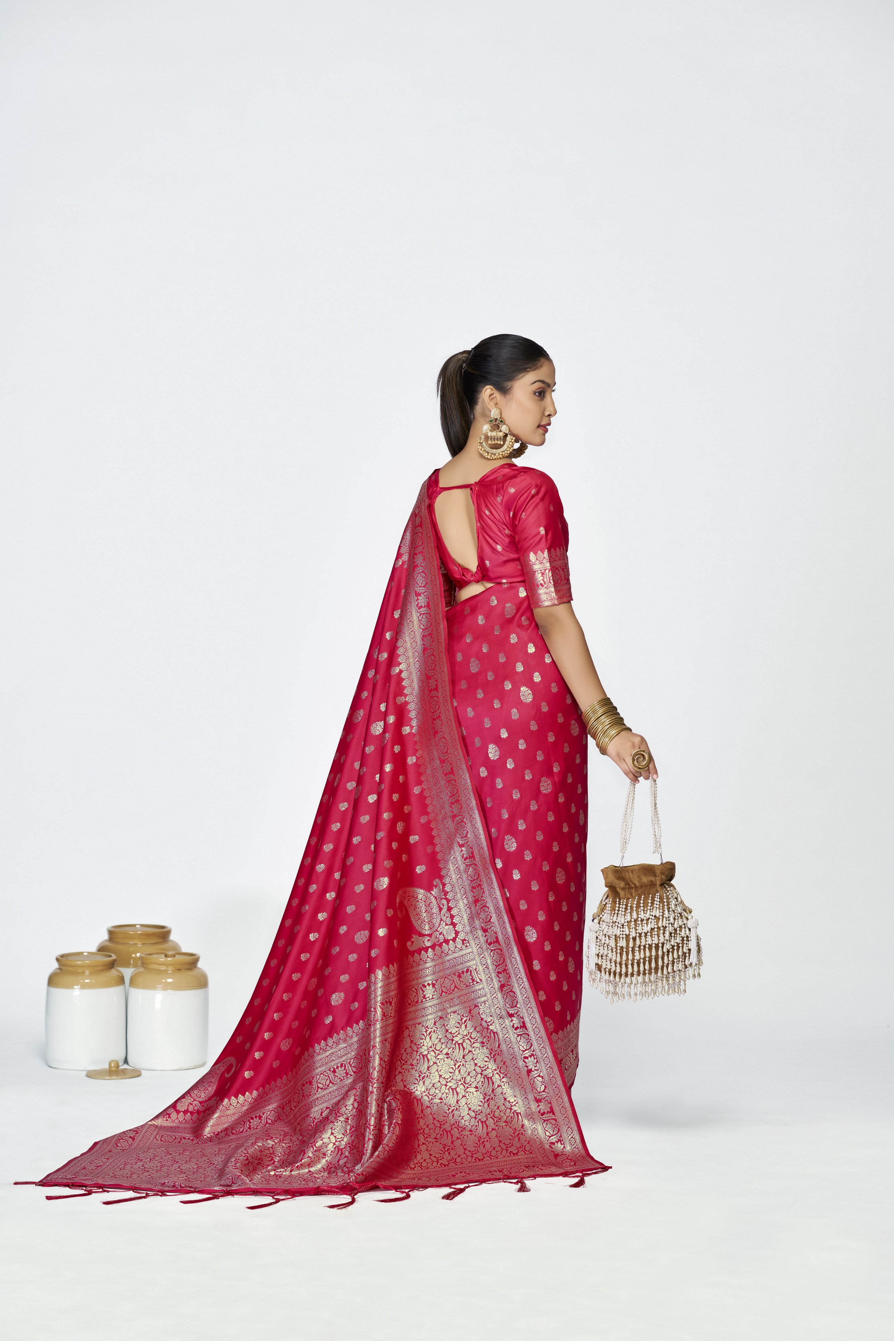 Pink Color Banarasi Silk Fabric Woven Jari Butti Designer Celebrity Fancy Saree