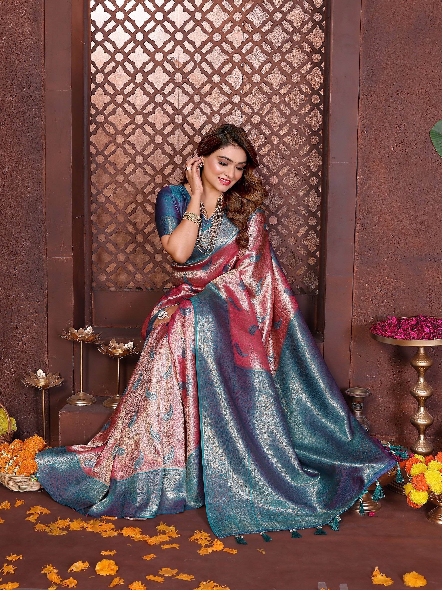 Pink Color Banarasi Tissue Silk Woven Rich Paithani Designer Ceremonial saree